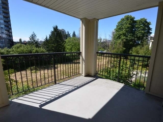 beautiful & well managed complex across from 21 acres "Garden City Park". 930 sq.ft. quiet NW corner unit. One owner & shows like new. Two bedrooms plus den, 2 full baths. Bedrooms are separate providing more privacy. 102 sq.ft. covered Northwest facing patio. Open kitchen. Gas fireplace and gas range. Very nice club house with kitchen facilities & exercise room. Serene, yet convenient. Close to shopping centre & public transit, walking distance to schools. One secured under building parking and storage locker.